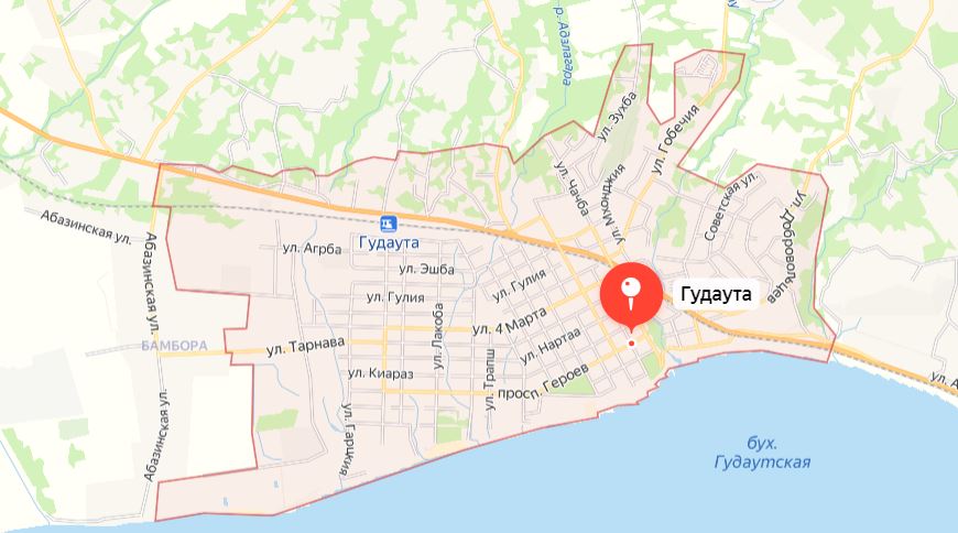 Гудаута – климатический курорт, находится на расстоянии 70 км от границы. Если вы собираетесь поехать отдыхать в Абхазию с детьми, то Гудаута отличный выбор: здесь нет шума мегаполиса и крупных развлекательных комплексов. Курортными районами Гудауты являются знаменитый Золотой берег – один из лучших пляжей Абхазии и уединенное село Бамбора. В 5 км от курорта находится центр исторического региона Бзыбская Абхазия и крупнейшее село республики – Лыхны. Историческим памятником Лыхны является действующая церковь Успения Божьей матери. Недалеко от Золотого берега находится крепость Амбара или как ее еще называют Мюссерский храм. В 7 км от города Гудаута расположился настоящий парк львов, сафари-парк «Прайд».